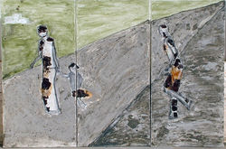 ![]() Three Woman Walking , 2007 Rust, Concrete & Charcoal on Canvas, 180 x 180 x 4 cm | ![]() Woman Walking , 2007 Rust, Concrete & Charcoal on Canvas, 120 x 90 x 3 cm |
